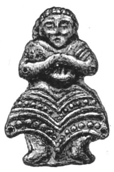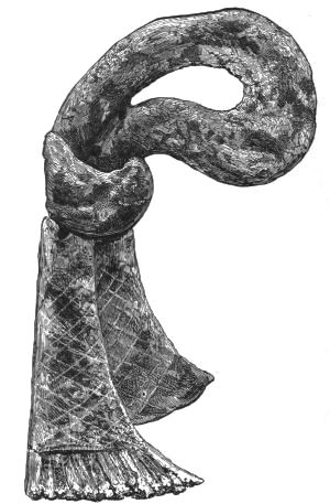 It was not, however, a metallic or solid object; for the deified Ino, to save Odysseus from the fury of the storm, throws to him her own kredemnon and bids him bind it round his chest (Od. V. 346). It used to be made of delicate and glossy material (Od. I. 334), and was worthy even to be a marriage gift from Aphroditè to the bride of Hector (Il. XXII. 470). But finally, it had a long wing, tail, or lappet (I am not skilled or confident in this vocabulary), descending from behind, perhaps more than one. This is shown indirectly, but I think conclusively, by the information given us in Od. VI. 100, that the handmaidens of Nausicaä, when about to play at ball, first put away their kredemna, evidently lest the free movement of their arms should be embarrassed by the long lappets. Again, it is evident that Penelopè, when she used her kredemna to cover her face, brought the lappets round and employed them as a veil; on any other ground the use of the plural can hardly be explained (Od. I. 334). And now this part of the prehistoric lady's toilette is as complete as I can make it from the Poems.