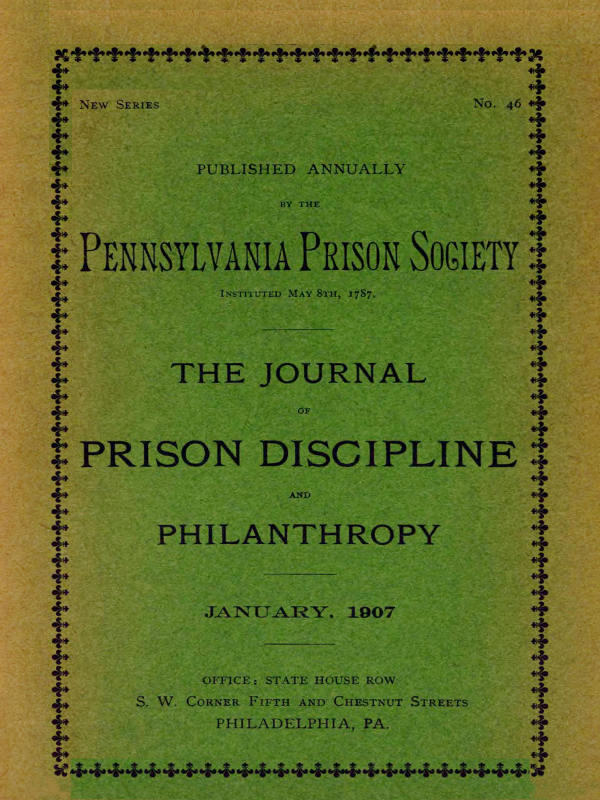 Persons receiving the Journal are invited to correspond with, and send any publications on Prison and Prison Discipline, and articles for the Journal to the Chairman of the Editorial Board, 600 North Thirty-second Street, Philadelphia, Pa., or S. W. Cor. Fifth and Chestnut Streets.