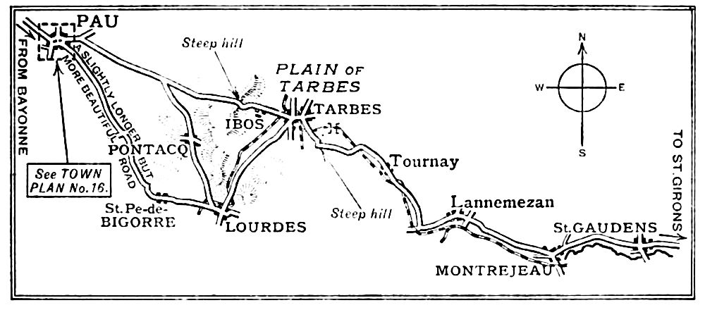 Dr. Kirk’s practical notes are the result of much experience, and they need only be supplemented by a word as to hotel charges. In every case the wise{vi} tourist discusses prices with the manager or proprietor before he takes his car into the courtyard or garage. By doing so he knows exactly what his bill will amount to in the morning, and he is quite sure of no overcharge. If no arrangement is made on arrival, one must be prepared for any charge, notwithstanding the prices given in guides or the hotel books published by the Touring Club de France.
