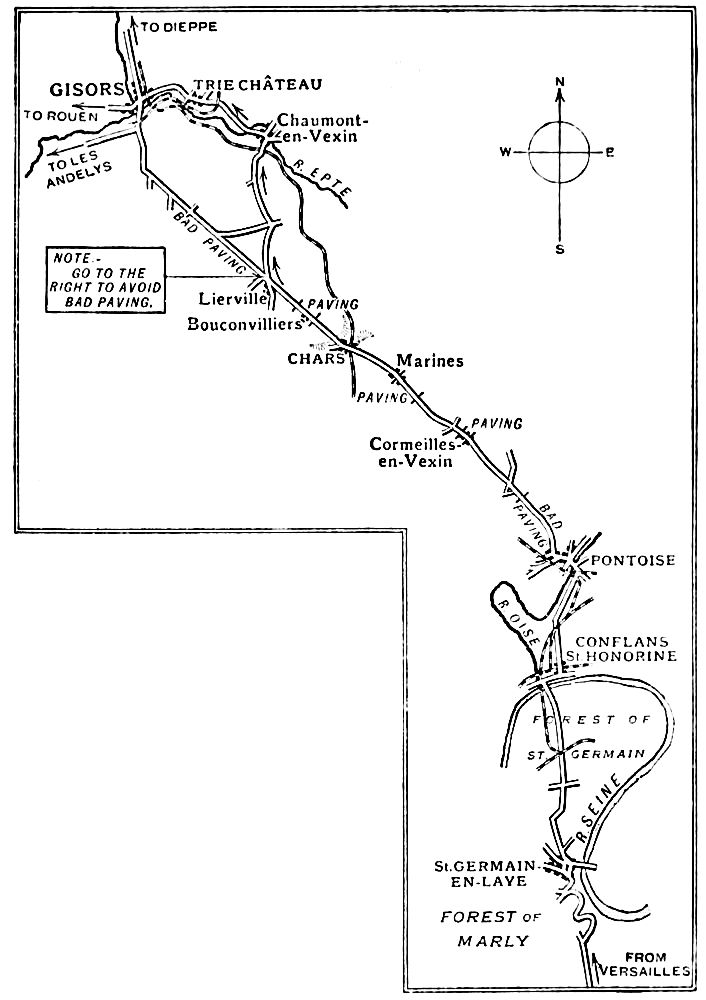 For those who either do not possess cars or do not wish to take their own abroad, the simplest method is to hire a car in England. The author’s experience of hiring from the Daimler Company has been so satisfactory that he is glad of this opportunity of recommending their cars. To Mr. A. H. Hallam Murray the author is greatly indebted for permission to reproduce four of his delightful pictures from ‘On the Old Road through France to Florence.’