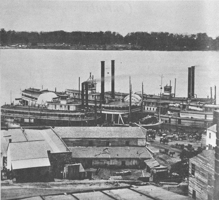 Merchant steamers unloading supplies at Vicksburg after the surrender. Courtesy Library of Congress.
