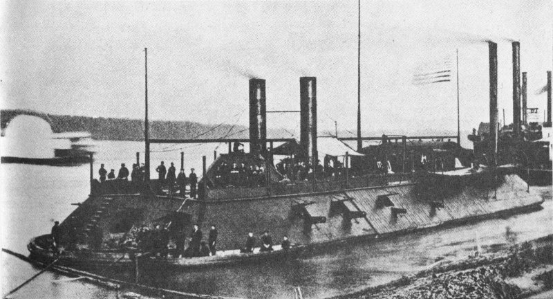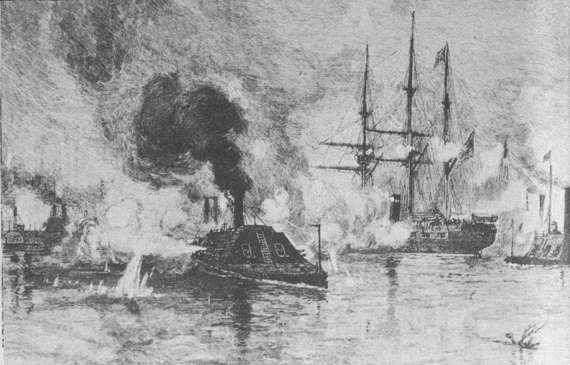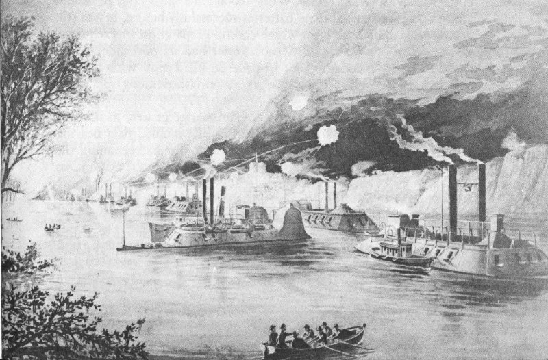 David Farragut, first admiral of the United States Navy, early in May 1862, headed his Western Gulf Squadron of oceangoing vessels up the Mississippi. In a spectacular 4 engagement he passed the forts protecting New Orleans and captured the South’s largest port city. Proceeding 400 miles up river, Farragut received the surrenders of Baton Rouge, capital of Louisiana, and Natchez, Miss., arriving before Vicksburg on May 18, just 1 year before Grant’s army invested the city from the rear. At the same time, Flag Officer C. H. Davis was moving down the Mississippi River from the north, commanding a flotilla whose striking power was largely provided by a ram fleet under Col. Charles Ellet, Jr., and the seven “Pook Turtles”—ironclad gunboats, built on the Northern rivers, which mounted 13 guns in an armored casemate resting on a flat-bottomed hull.