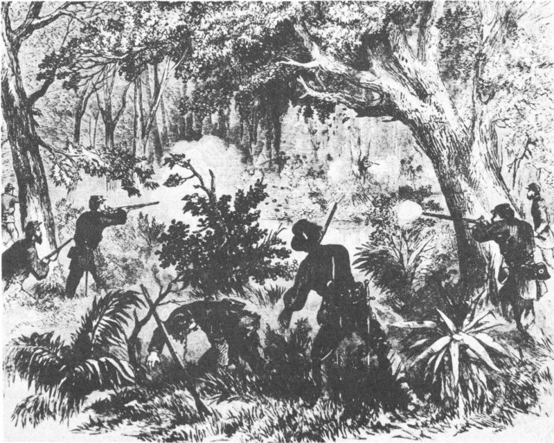 Scene of Sherman’s assault against the Bluffs at Chickasaw Bayou. From Battles and Leaders of the Civil War.