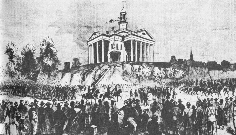 To protect this vital lifeline, the Confederacy had erected a series of fortifications at readily defensible locations along the river from which the Union advance could be checked. Pushing southward from Illinois 3 by land and water, and northward from the Gulf of Mexico by river, Union army and naval units attacked the Confederate strongpoints from both ends of the line. They captured post by post and city by city until, after the first year of the war, Vicksburg alone barred complete Union possession of the Mississippi River. From the city ran the only railroad west of the river between Memphis and New Orleans. Through the city most of the supplies from the trans-Mississippi were shipped to Confederate armies in the East. The city’s batteries on the bluffs, commanding a 5-mile stretch of the river, effectively prevented Union control of the Mississippi. Vicksburg was indeed the key, declared Lincoln, and the war could not be brought to a successful conclusion “until that key is in our pocket.”