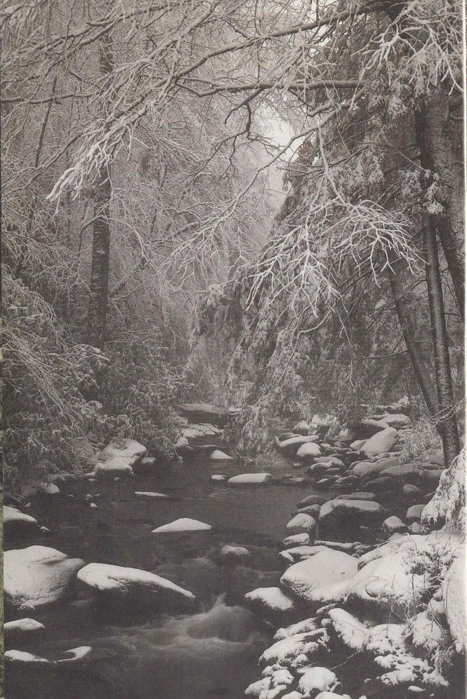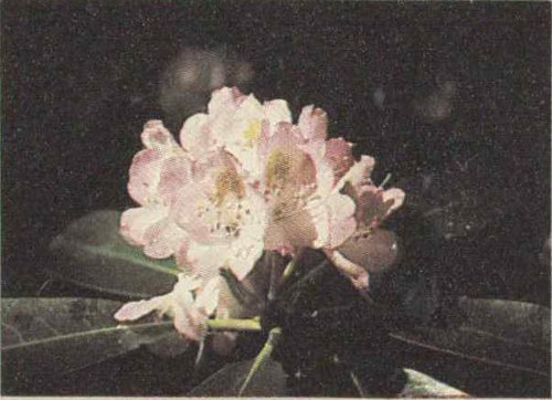 The crack of thunder suddenly wakens us from our reverie. A bank of clouds, dark underneath and contorted with churning air, is rolling over the ridges and into the head of the valley. The clouds shoot lightning toward the slopes below. Hypnotized by the spectacle we remain rooted to our rocks until the first drops fall, then we pull on our ponchos, determined to greet the storm. Soon the valley view is blotted out by boiling clouds. We and a circle of shrubs, both whipped by rain and wind, are all that exist in the world. Our foolhardiness on this exposed knob is soon revealed as lightning flashes so near that its crackling sound is almost instantaneous. We hurry down the trail, now a small torrent where it tunnels through the rhododendrons, and in a few minutes we reach safer ground. We eat our lunch under sheltering hemlocks. When we sense the end of the storm, we head toward our day’s goal, the top of the Smokies. The deciduous forest rapidly turns into a coniferous one, the beech, birch, maple, buckeye, and others giving way to a nearly solid stand of spruce and fir. This is an enchanted forest. Carpets of mosses and ferns, struggling, as it were, for growing space, make delicate patterns on the forest floor. Limber-stemmed shrubs lift round or toothed leaves to the pale, post-storm light filtering through the thick evergreen foliage of the trees 28 above. Out of the stillness, like the voice of some tiny fairy, comes the tinkling medley of a winter wren. We stop and listen. We watch a drop of water fall from the tip of a fern. We feel the coolness, a coolness born of altitude. We have reached Maine right here in the Smokies.