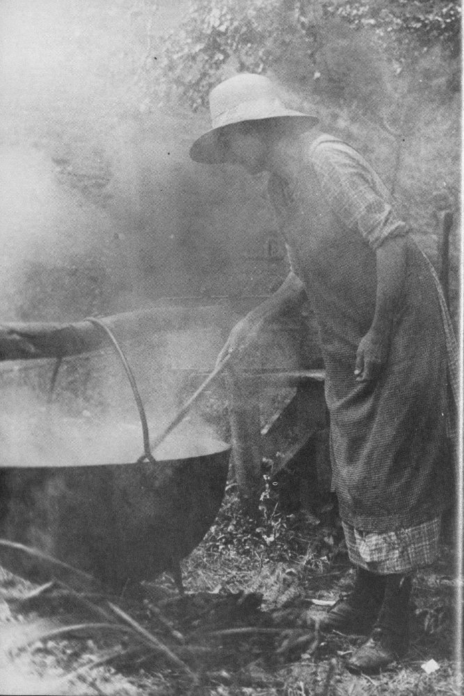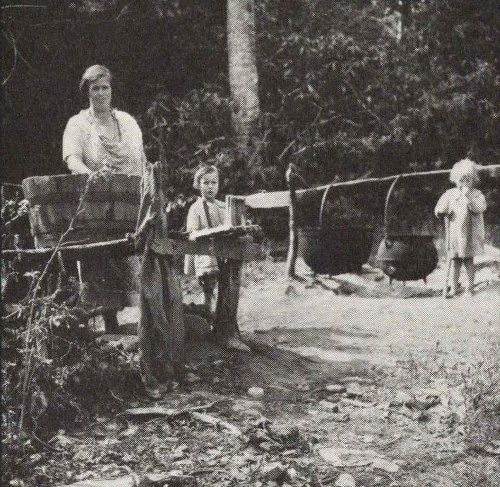 But now, in the 1980s, he will tell you that everyone in the Smokies had scaffolds in their yards back in Aunt Cindy’s day for drying fruits and vegetables for winter storage. Everyone, that is, but Aunt Cindy. She used the big boulder across from their cabin, or what used to be the flat part of it. Many’s the time Glenn’s mother, as a little girl, helped Aunt Cindy spread produce to sun dry on the rock.
