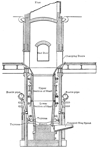 Blast-Furnace Practice:—Functions of the Furnace—Reduction Smelting—Oxidation in the Furnace—The Pyritic Principle—Features of Modern Working: Water-Jacketing, Increase in Furnace Size, External Settling—Constructional Details of the Furnace, |