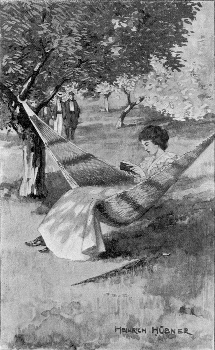 Da die Euston Browns ein sehr geringes Vermögen besitzen und seine Kunstwerke noch nie einen zahlungsfähigen Liebhaber fanden, müssen sie sich einschränken, und die junge Hausfrau erzählte mir, daß sie mit einem Dienstmädchen und dem Stalljungen auskommen und daß sie in Folge dessen sich die ersten drei bis vier Morgenstunden auf das Eingehendste mit der Wirthschaft beschäftigt. „Zum Luncheon bin ich aber fix und fertig, und mein Mann verlangt, daß ich den übrigen Tag mit ihm spazieren gehe, Tennis spiele, musicire, Besuche mache und die häuslichen Angelegenheiten, die kleinen Miseren nie mit einer Silbe erwähne.“ Ihre ultra-subtilen, etwas überspannten ästhetischen und ethischen Ansichten scheinen ihren praktischen Menschenverstand aber keineswegs zu beeinträchtigen, denn als wir drei Herren von einem längeren Spaziergang kurz vor dem Luncheon zurückkamen, lag Frau Enid im weißen Kleid in der Hängematte unter den Apfelbäumen und las Rossetti’sche Gedichte, während das kleine Hauswesen auf das Netteste und Pünktlichste geordnet war.
