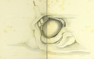 In a person prepared for the operation the rectum is emptied by purgative medicine and an enema; and the bladder, which in a stone patient seldom contains more than eight ounces of urine, occupies the hollow of the flaccid or contracted rectum. Care has been taken not to distort these parts by the introduction of an instrument into the urethra, nor by more distention than was sufficient to preserve a general outline. To Mr. Giraud, dresser to Sir Astley Cooper, I am indebted for the drawings; the object of this plate being to represent the true bearing of the parts concerned in Lithotomy, they were drawn of the natural size, by measurement, from a young man, twenty-nine years of age, who died after six days illness; and the dissection being completed within twelve hours after his decease, the rigidity of death still remaining retained the parts in situ.