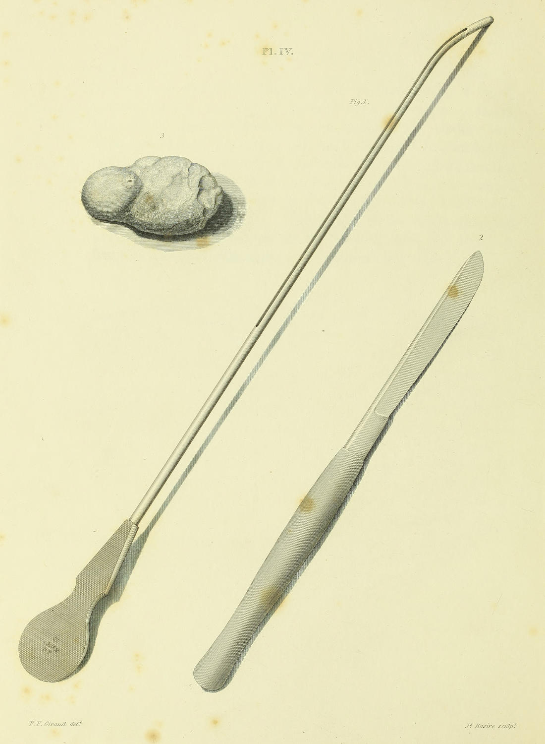 I was first led to try an instrument of this form on the dead subject, by the following accidental occurrence. Being called upon to examine a child who had died with stone in its bladder, I was desirous of performing the operation, before making any examination of the body; and having neither staff, Gorget, nor stone-knife with me, I was obliged to operate with a common director, a scalpel, and dressing forceps; and I was forcibly struck with the facility with which the director conducted the knife into the bladder.