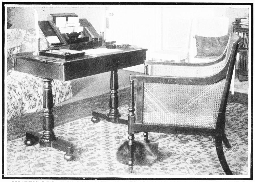 THE WRITING TABLE AND CHAIR USED BY THACKERAY AT YOUNG STREET, ONSLOW SQUARE, AND PALACE GREEN