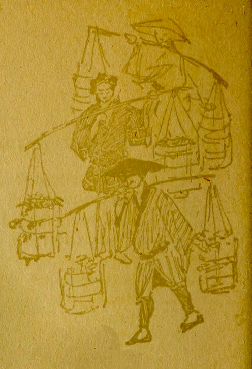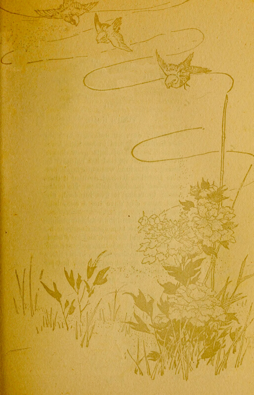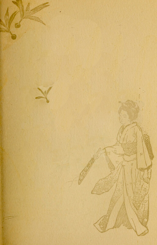 Meanwhile the nerve-scraping dzin, dzin, dzin of a samisen was disturbing the air with teasing persistence. There is something provoking and still alluring in the music of the samisen. It startles the chills in the blood like the maddening scraping of a piece of metal against stone, and still there [pg 8] is an indescribable fascination and beauty about it. Now as it scratched and squealed intermittently and gradually twittered down to a zoom, zoom, zoom, a voice rose softly, and gently, insinuatingly, it entered into the music of the samisen. Only one long note had broken loose, which neither trembled nor wavered. When it had ended none could say, only that it had passed into other notes as strangely beautiful, and a girl was singing.