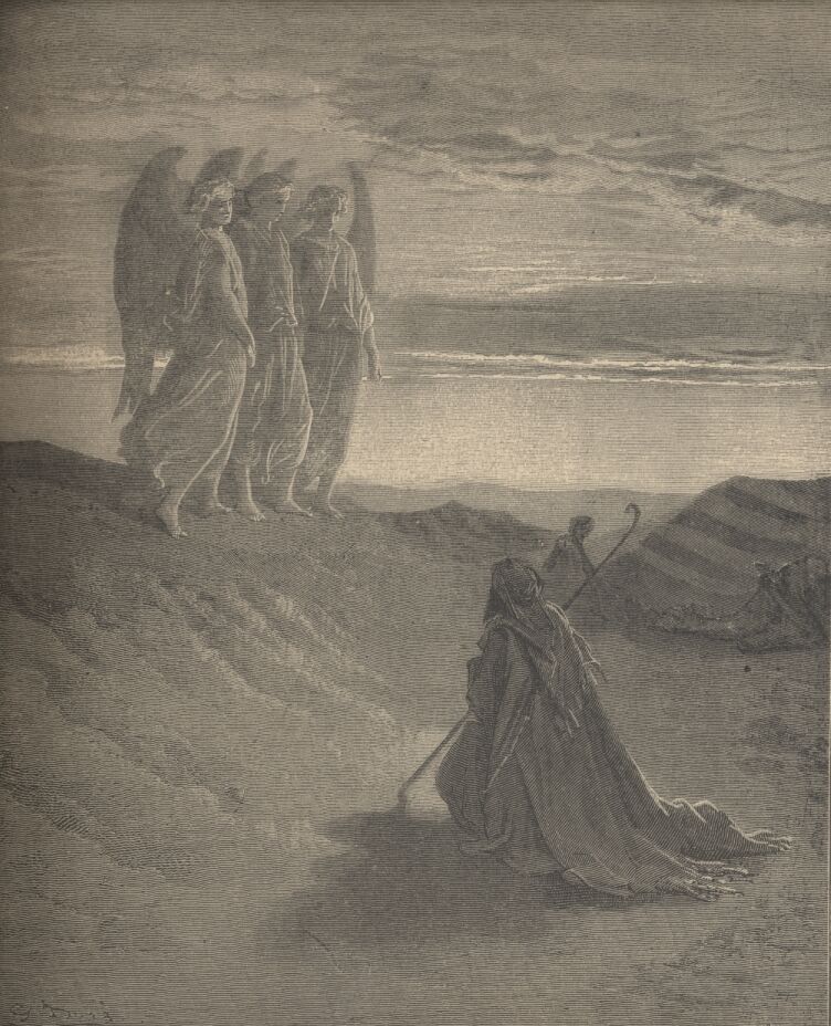 ABRAHAM ENTERTAINS THREE STRANGERS.