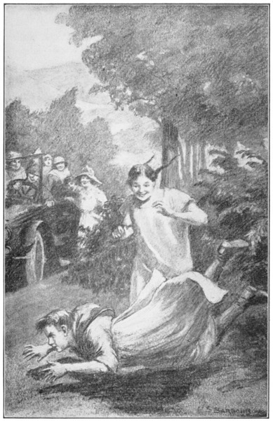 He made a movement with his hand, and simultaneously the postman retreated a step or two toward the house. Pee-wee tried releasing his hold upon the trunk with the other hand and almost lost his balance on the shaky limb.